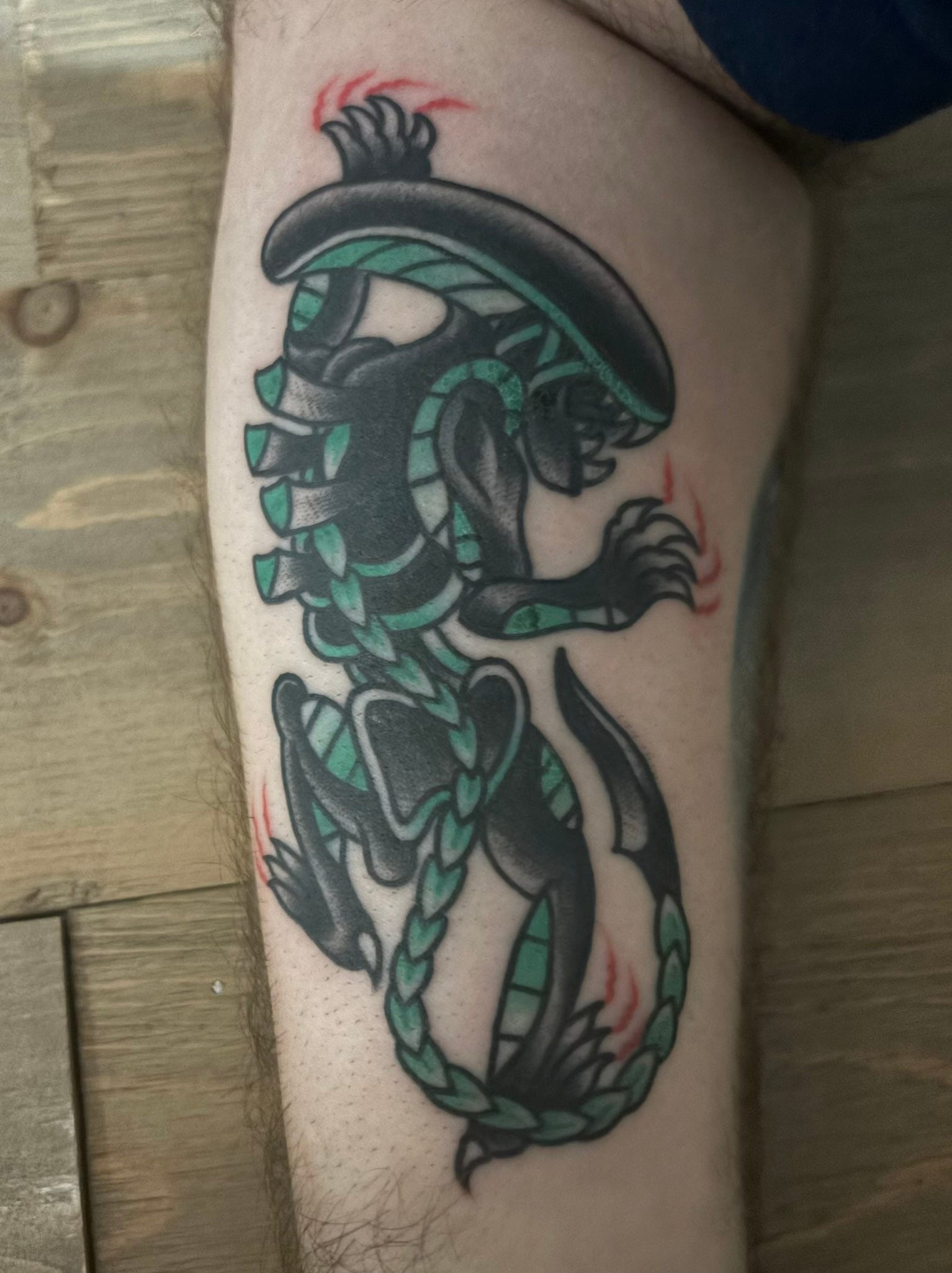I’m thankful for my Xenomorph tattoo even though it hurt like hell.