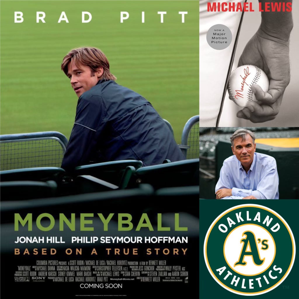 Moneyball came out in 2011 and is based on the 2003 book by Michael Lewis. Lewis documented how Billy Beane, the general manager of the Oakland Athletics, used analytics to build one of the most consistently successful teams in baseball despite having the lowest payroll in the sport. As I type this, I’m realizing that you may not know why this is significant enough to deserve a book and an Oscar-nominated movie. Allow me to explain….